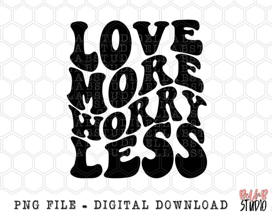 Love More Worry Less Wavy Retro PNG Sublimation Design