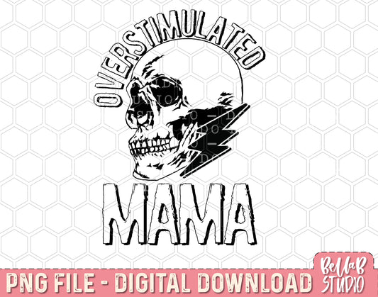 Overstimulated Mama Skull and Bolt PNG Sublimation Design