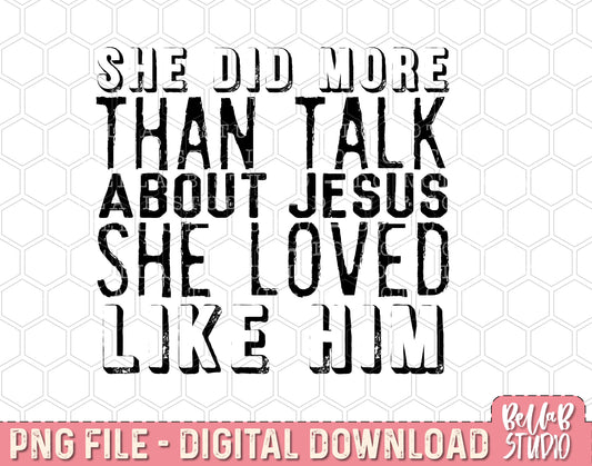 She Did More than Just Talk About Jesus She Loved Like Him PNG Design