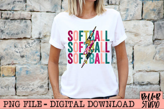 SOFTBALL Bright Leopard Bolt Sublimation Design