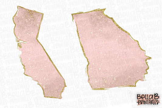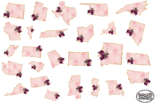 Floral Pink Watercolor Gold Glitter United States Bundle, Sublimation Designs