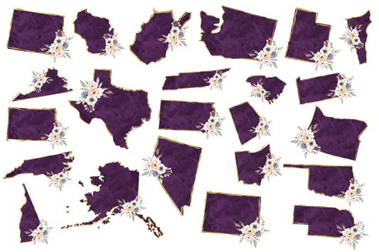 Floral Purple Watercolor Gold Glitter United States Bundle, Sublimation Designs