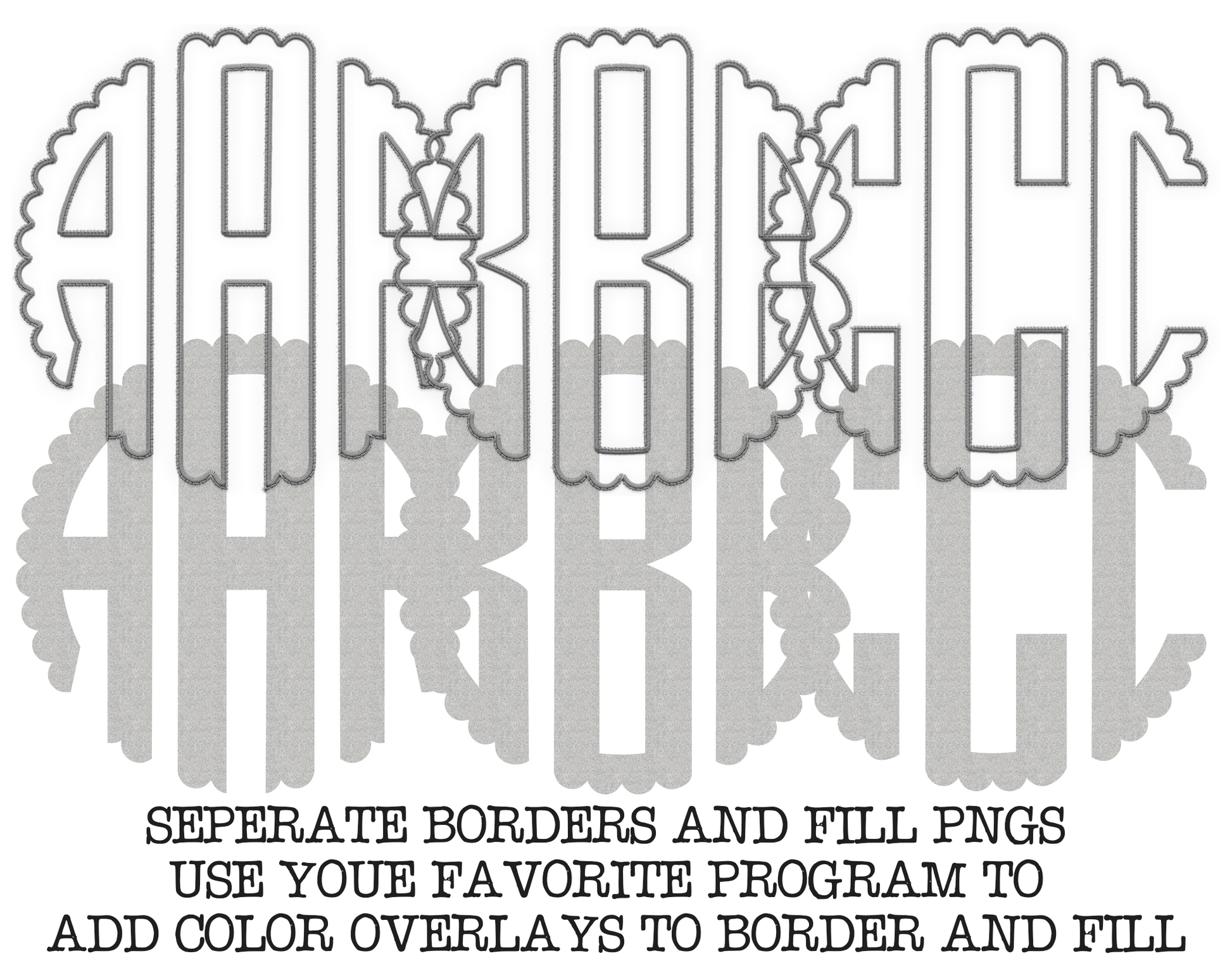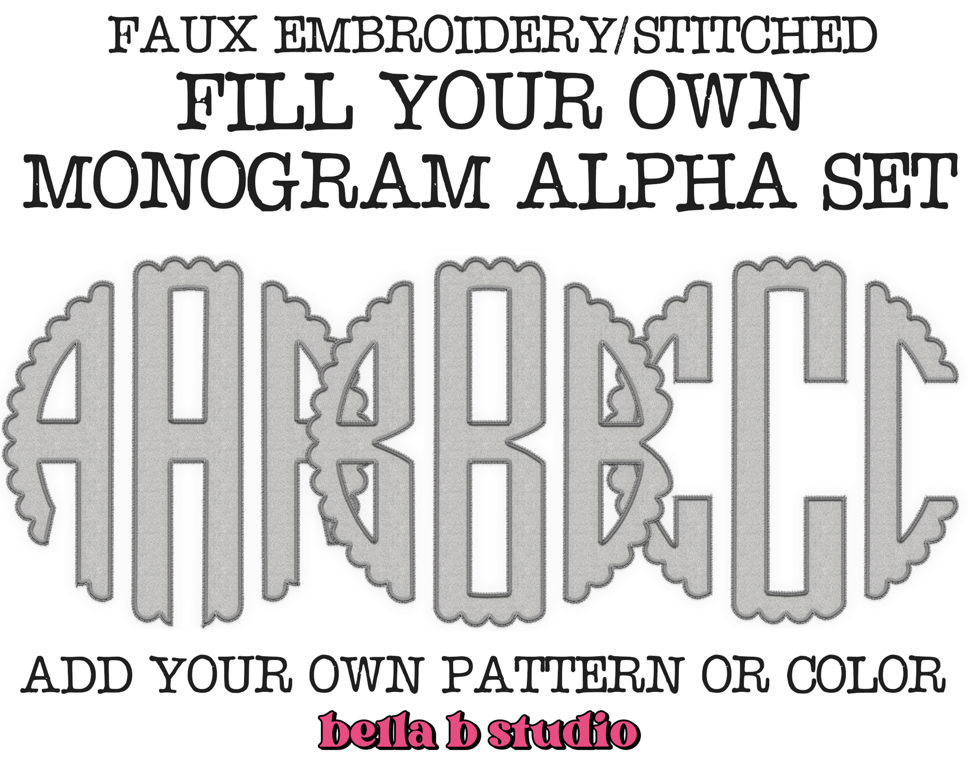 FAUX Embroidery Fillable Blank Scalloped Monogram Alpha Set - Make Your Own Alpha Set
