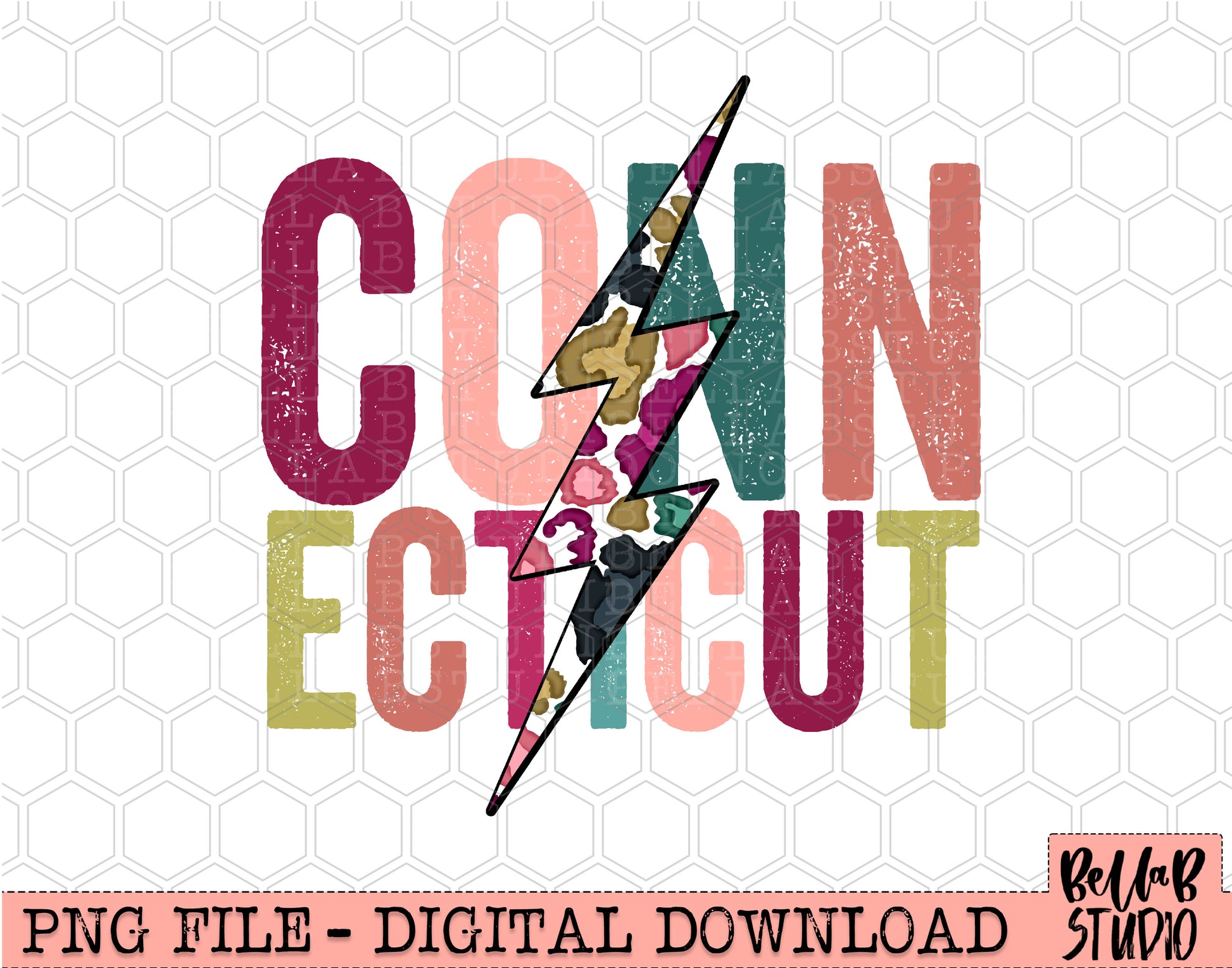 CONNECTICUT Bright Leopard Bolt Sublimation Design