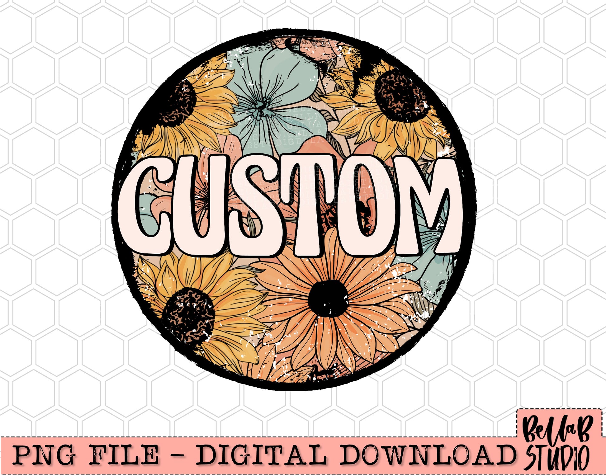 Custom Retro Sunflower PNG Design
