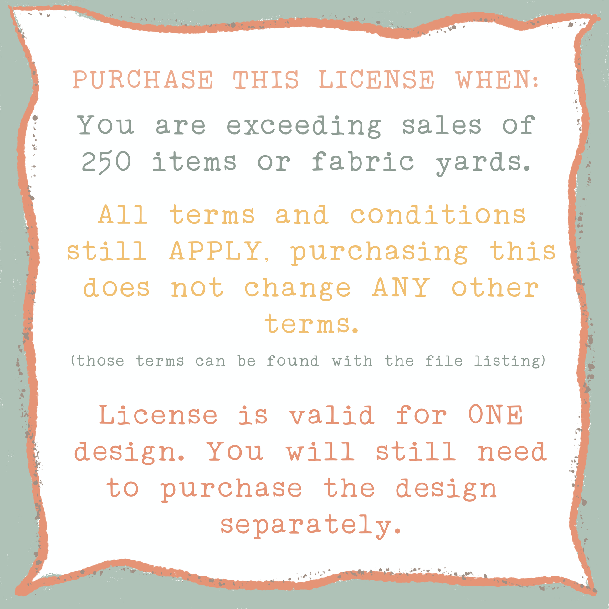 Recommended to keep the receipt for proof of purchase. **Please leave in notes to seller which design you are purchasing this license for. If you have any questions about this don’t hesitate to message me!