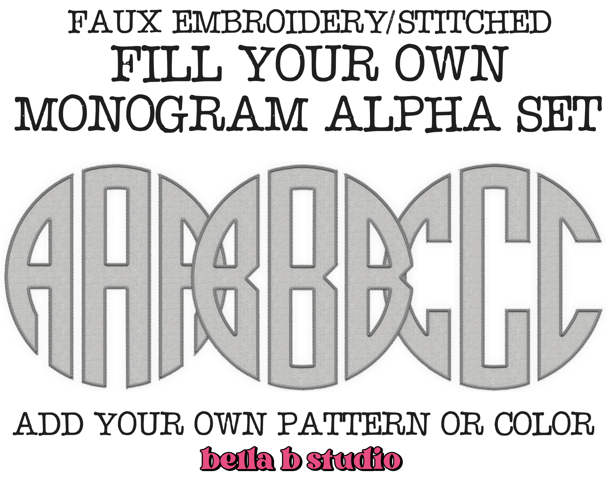 FAUX Embroidery Fillable Blank Monogram Alpha Set - Make Your Own Alpha Set