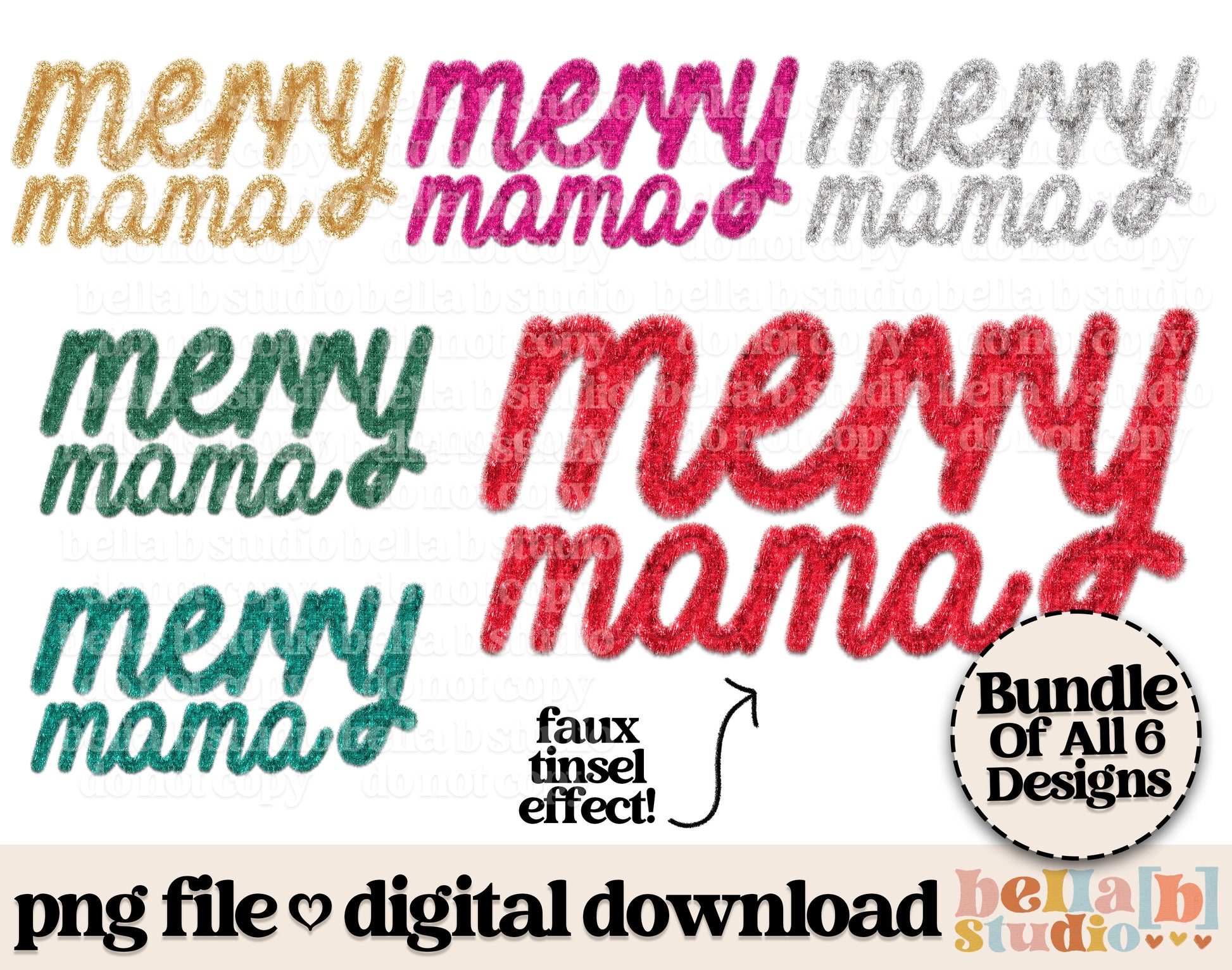 Faux Tinsel Merry Mama PNG Design - Bundle of 6