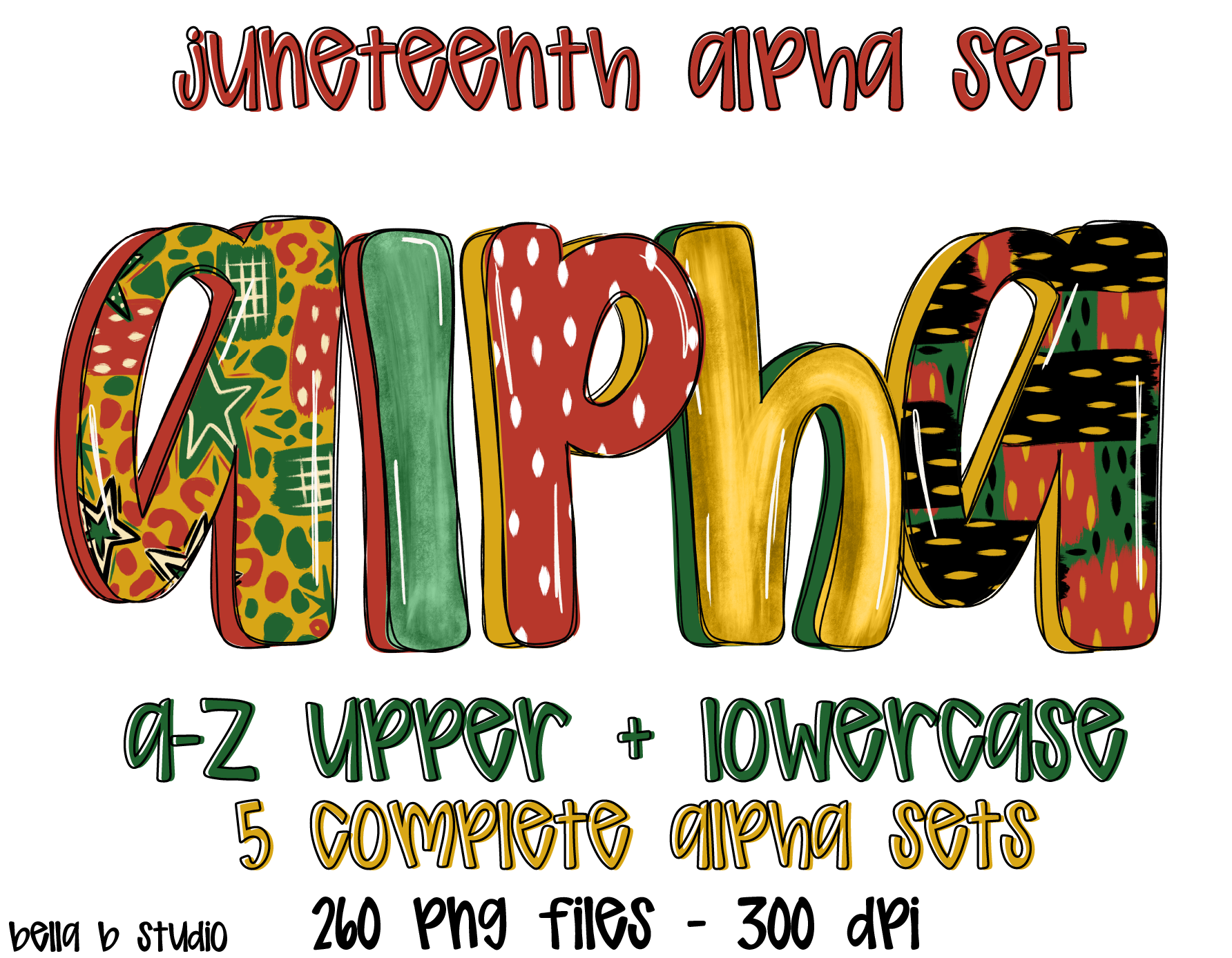 Juneteenth Doodle Alpha Bundle - Set of 5 Alphabets