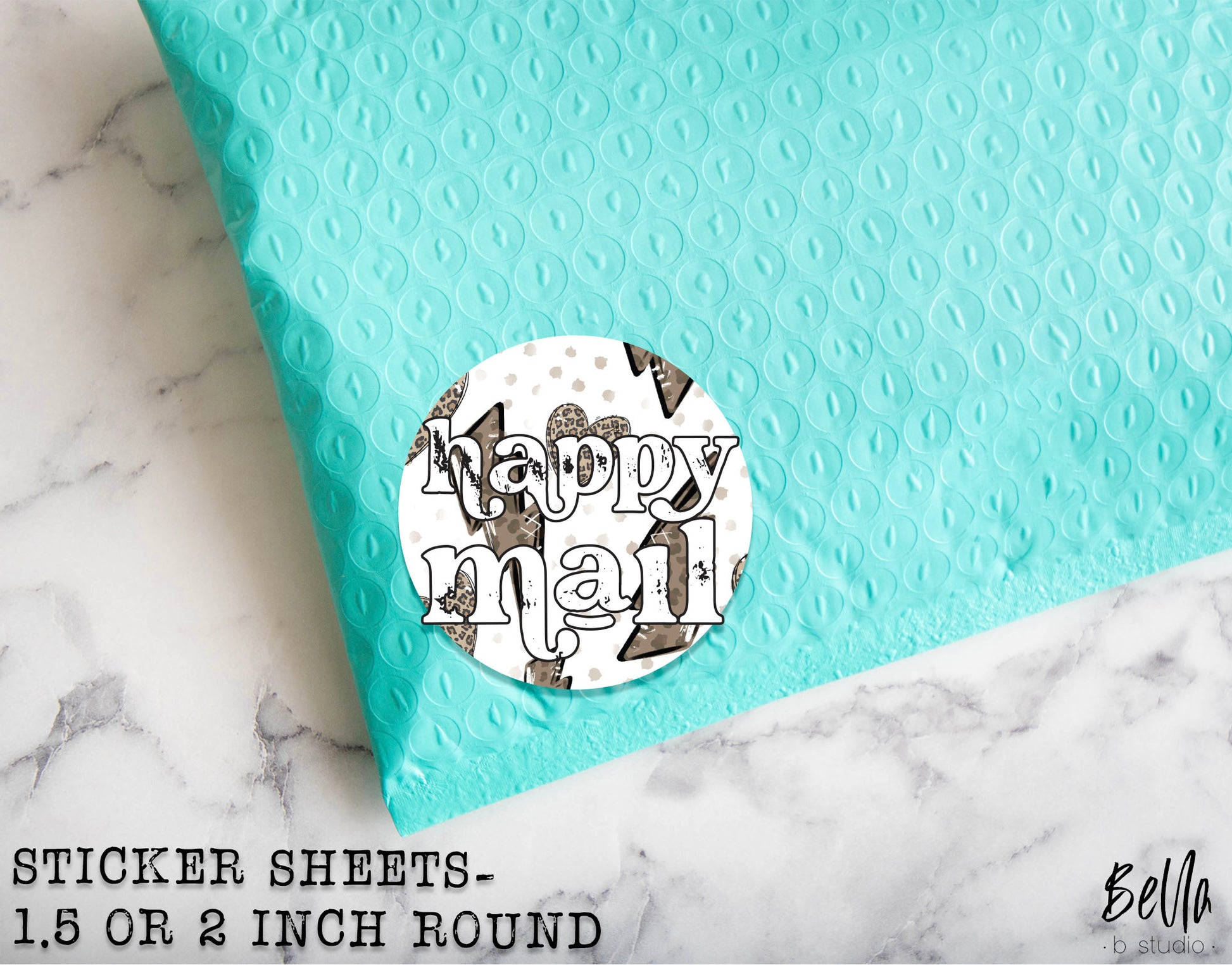 Lightning Bolt Happy Mail Sticker Sheet - Small Business Packaging Stickers