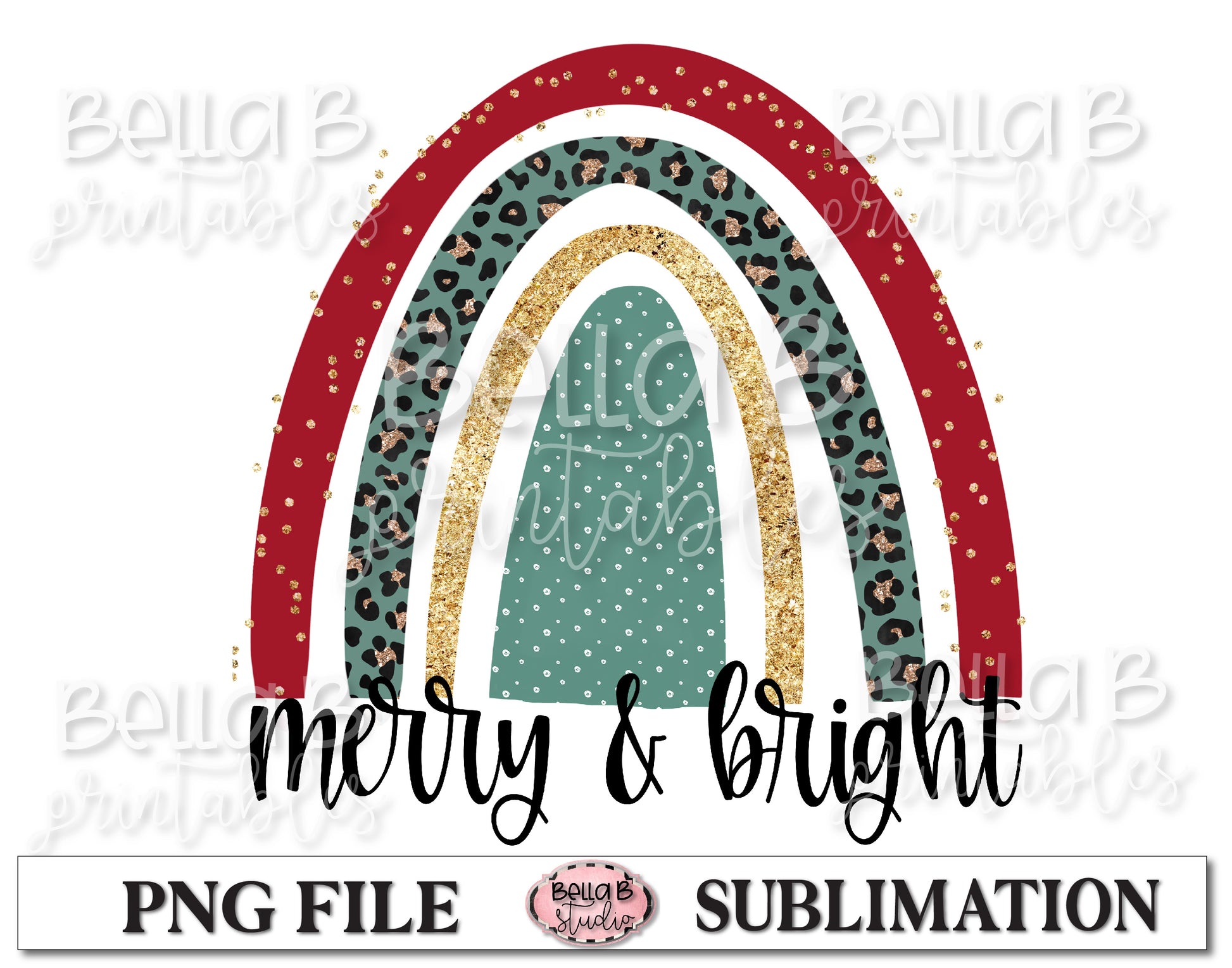 Merry and Bright Christmas Rainbow Sublimation Design