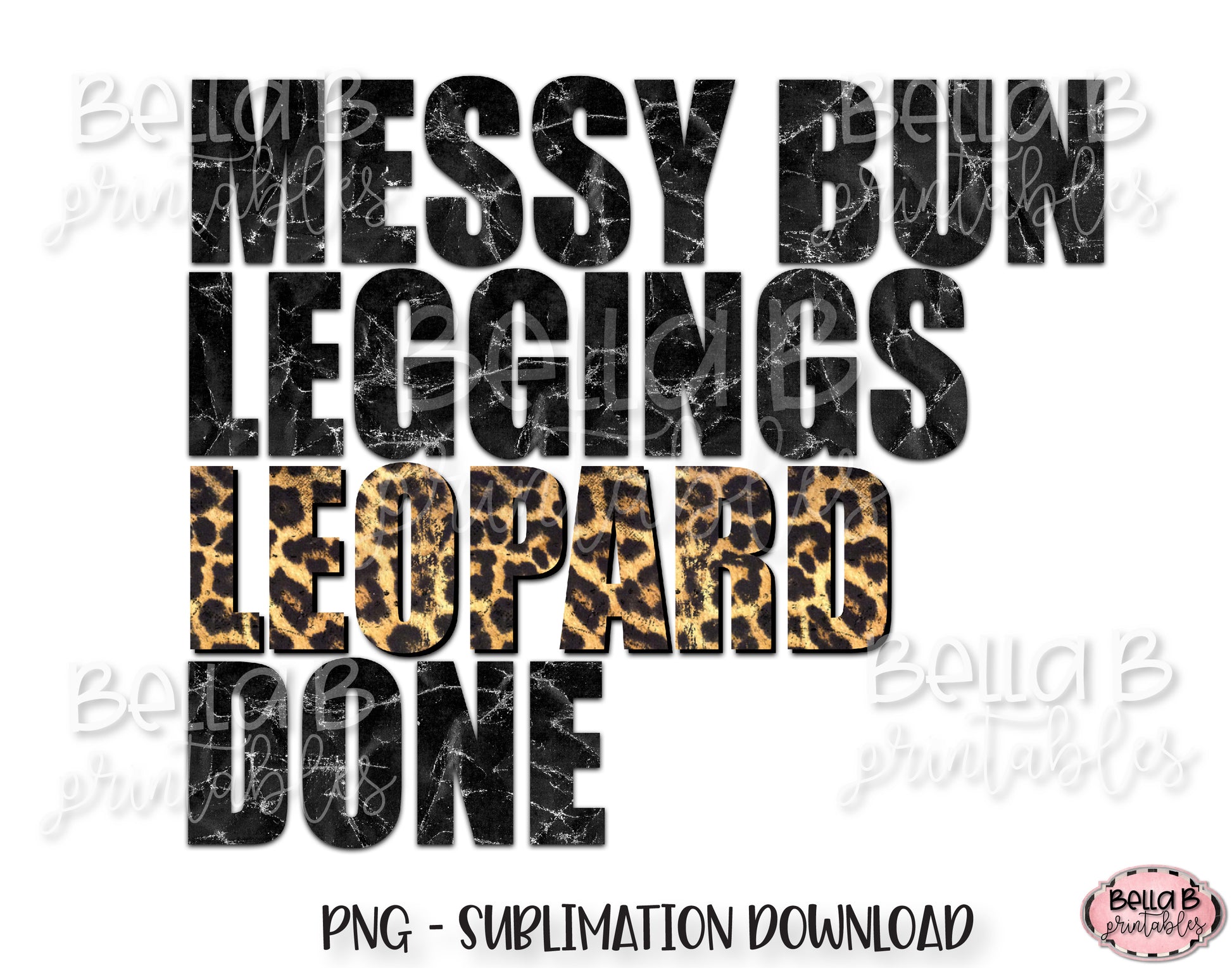 Messy Bun Leggings Leopard Done Sublimation Design