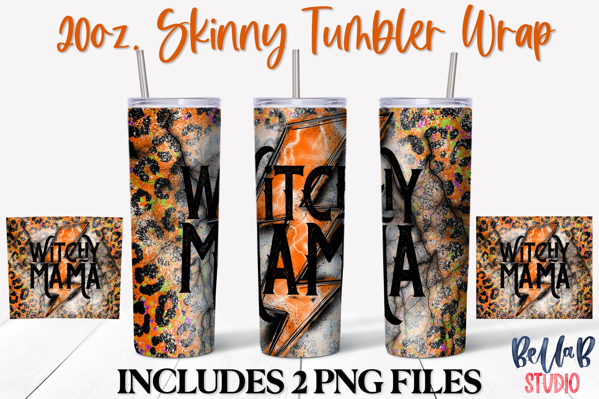 Orange Leopard Bolt Witchy Mama 20 oz Skinny Tumbler Design