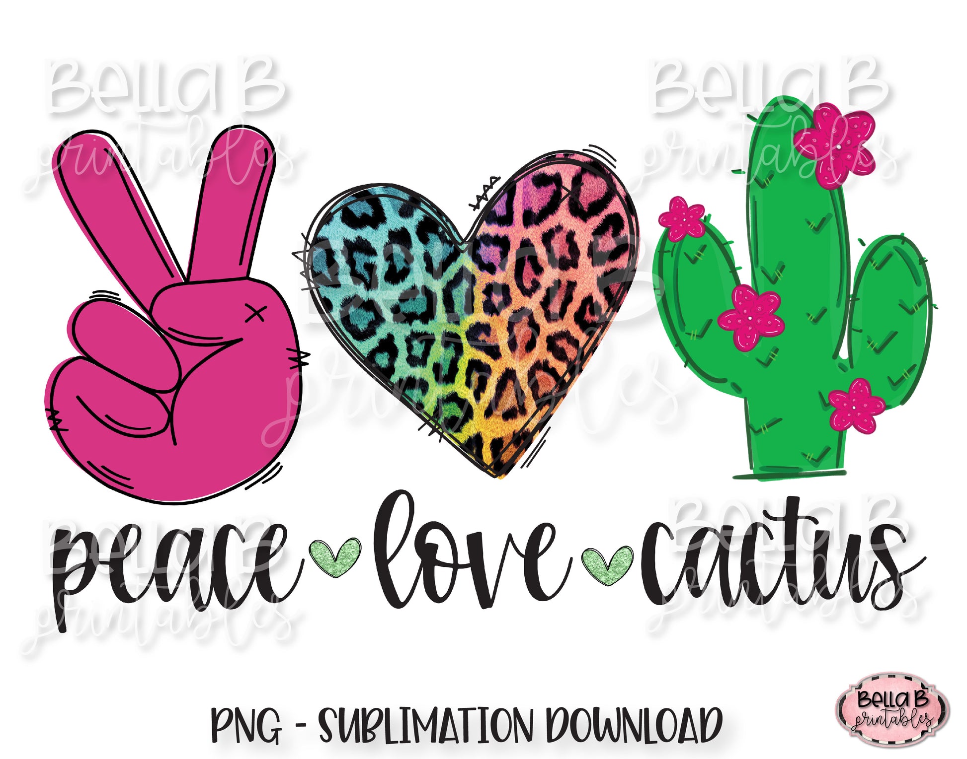 Peace Love Cactus Sublimation Design