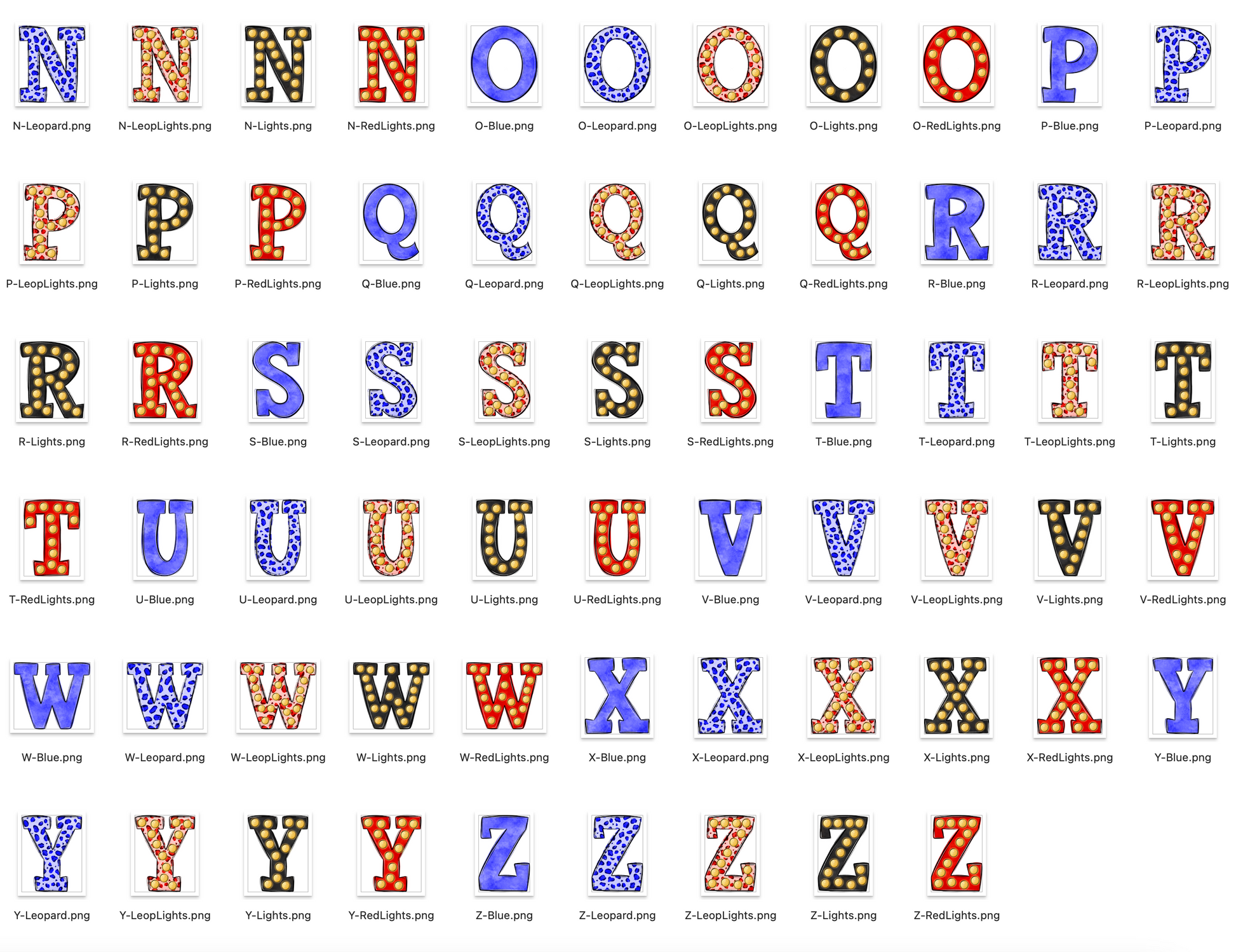 Red and Blue Spirit Marquee Varsity Alpha Bundle - Set of 5 Alphabets