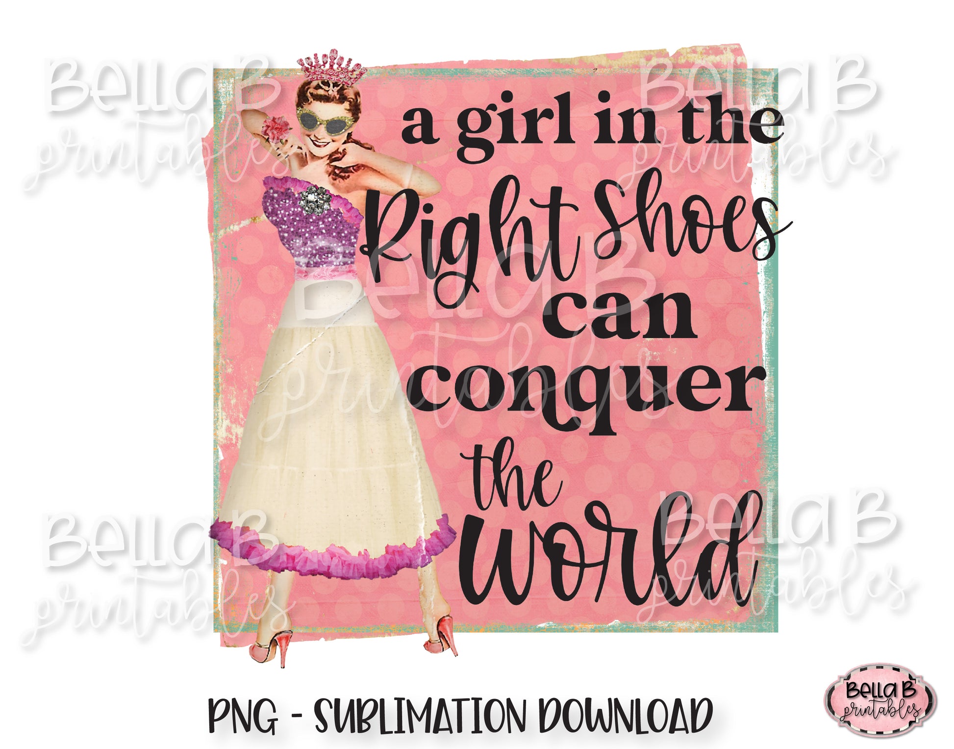 Retro Girl Sublimation Design, Vintage Pin Up, A Girl In The Right Shoes Can Conquer The World