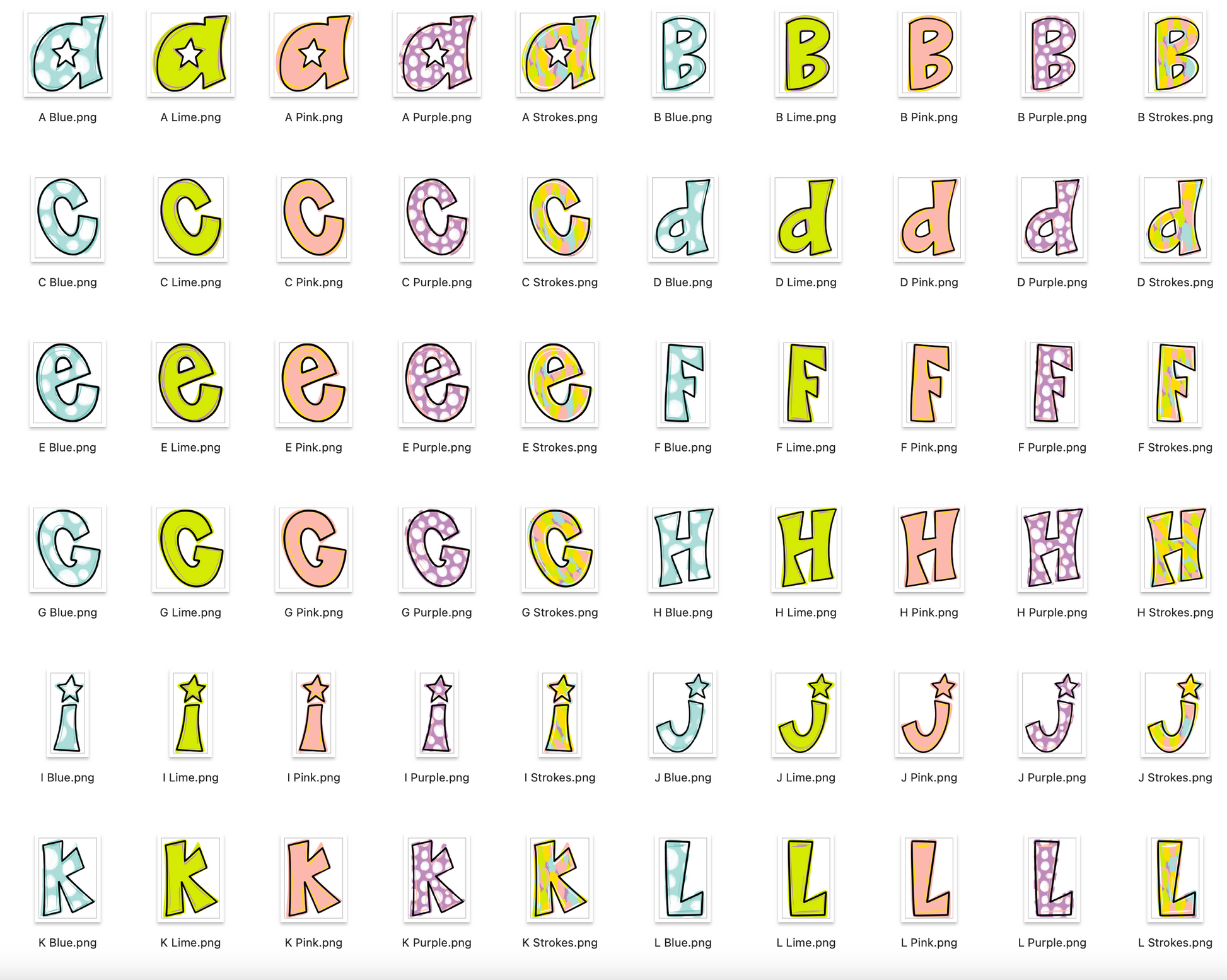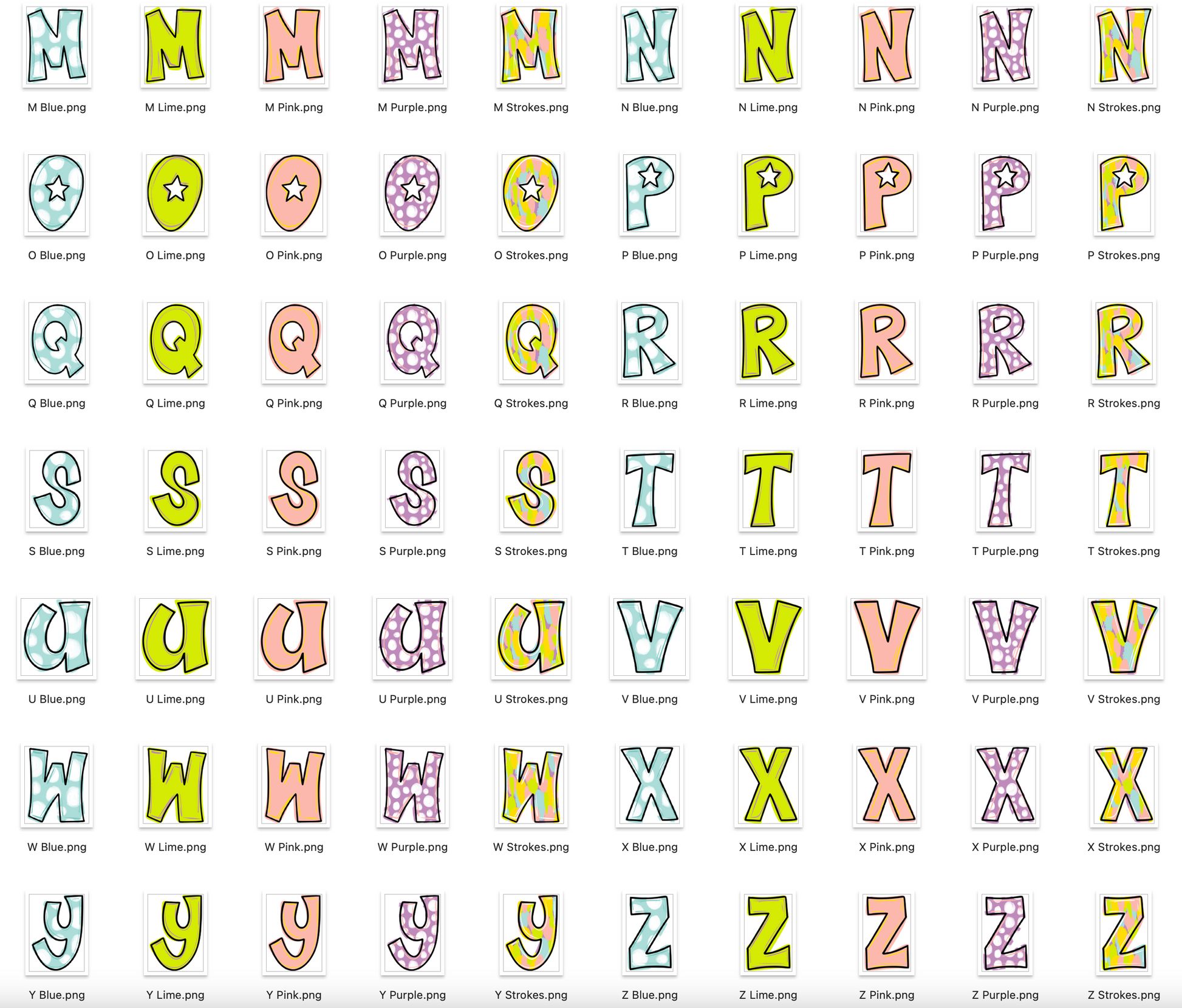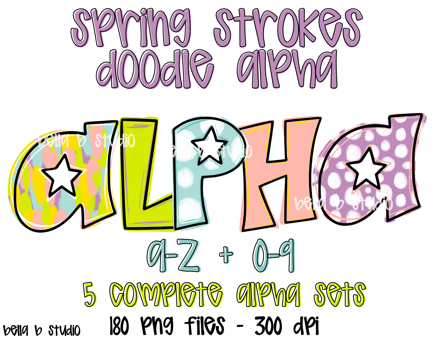 Spring Strokes Doodle Alpha Bundle - Set of 5 Alphabets