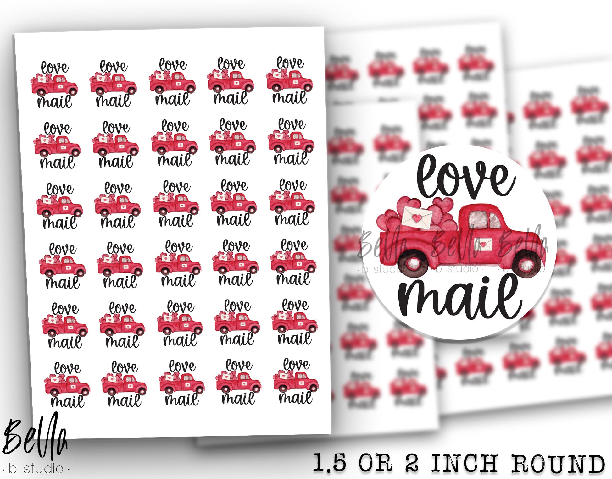 Valentine Love Mail Truck Sticker Sheet - Small Business Packaging Stickers
